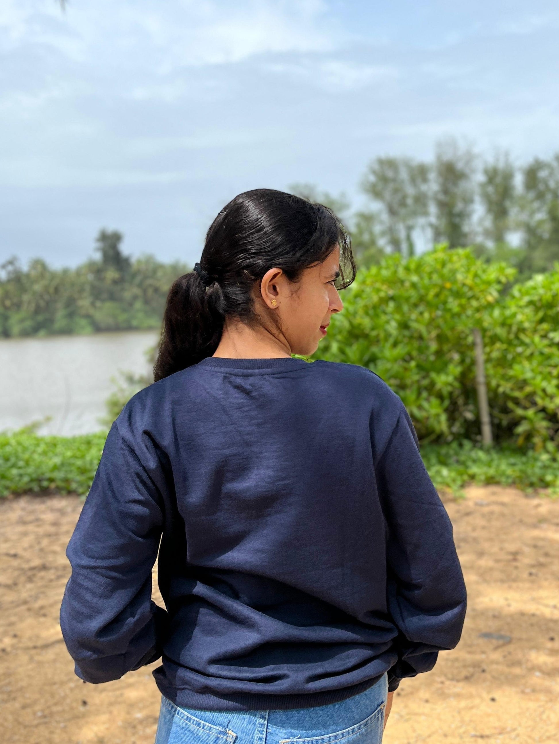Navy colour Red cherry embroidery sweatshirt