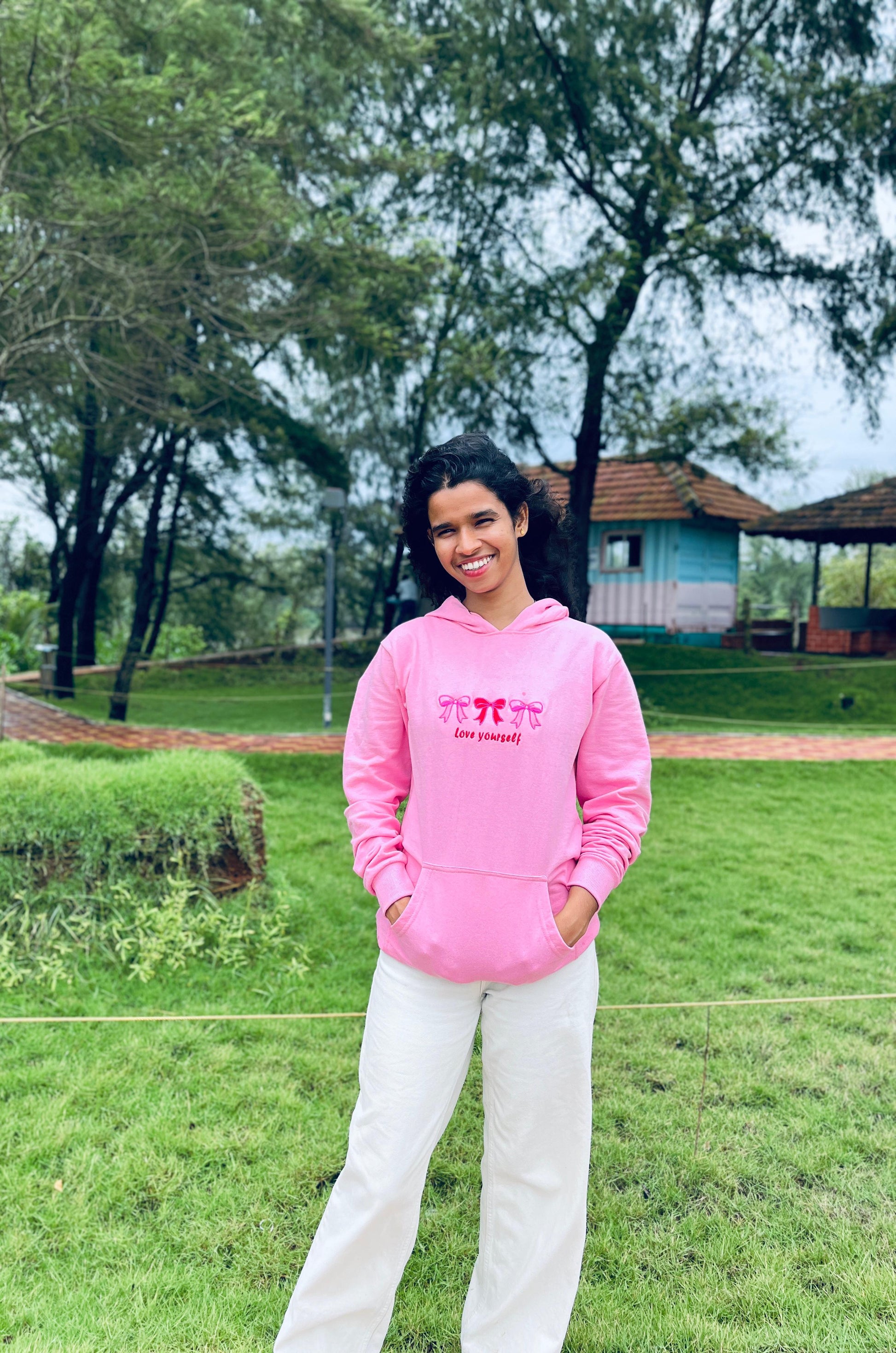 Wrap yourself in comfort and self-love with our Pink “Love Yourself” Hoodie, featuring a cute pookie-inspired embroidery with bow details 🎀. Designed in a soft pastel pink shade, this hoodie is not just cozy but also a reminder to embrace who you are every day.